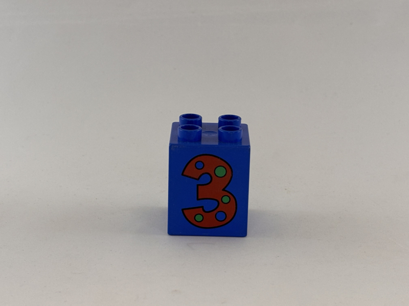 Blok 4 nops hoog blauw getal 3 met stippen Duplo