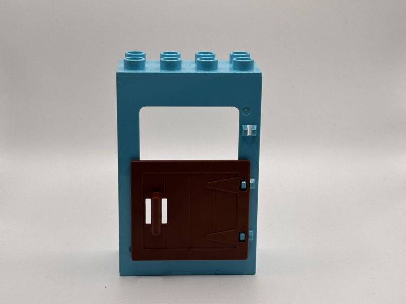 Kozijn azuurblauw met staldeur bruin Duplo