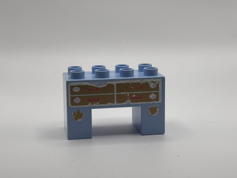 Duplo kinderbed met afbeelding maan. Bed is verkleurd