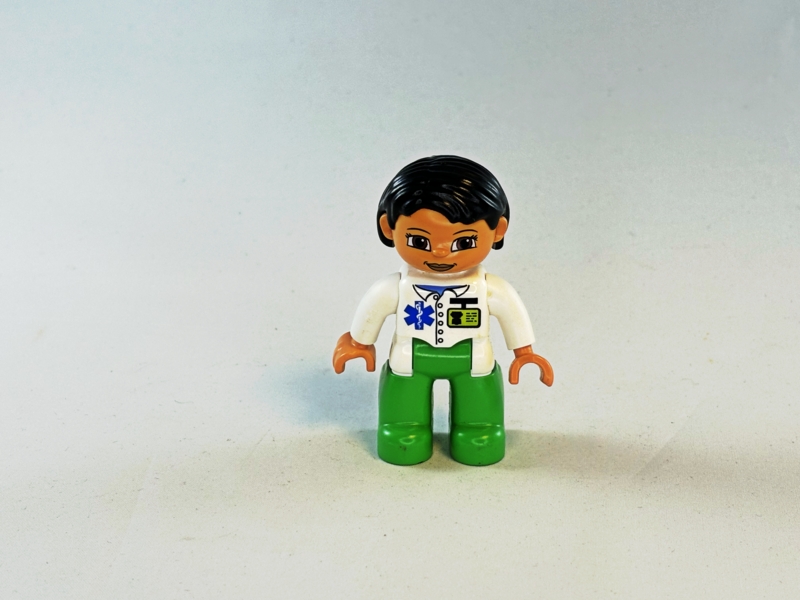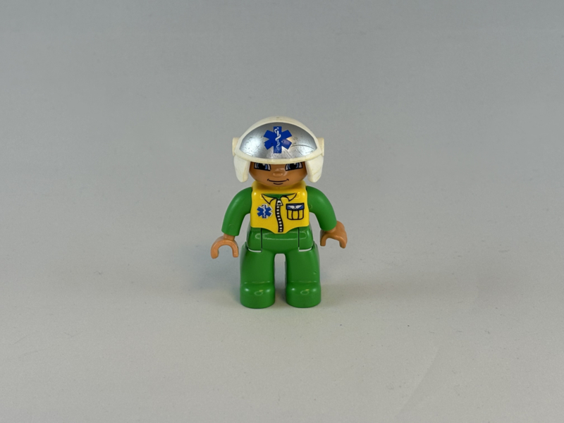 Piloot eerste hulp / ziekenhuis DuploDuplo piloot eerste hulp / ziekenhuis groen met gele kleding en witte helm