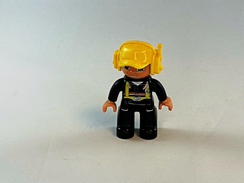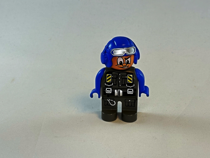 Duplo Toolo piloot met grijs pak en blauwe helm