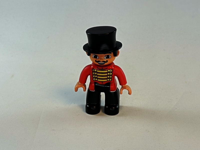 Duplo circusdirecteur mrt rood shirt en zwarte hoge hoed oud model