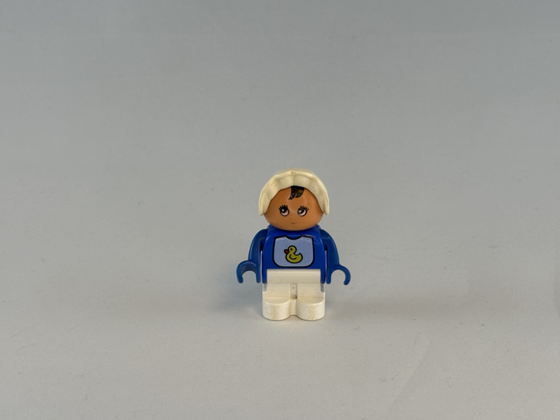 Duplo baby met kap en eendje op slabbetje