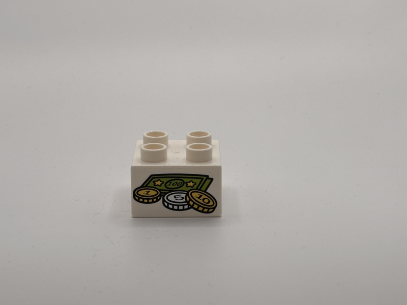 Geld op blok wit Duplo