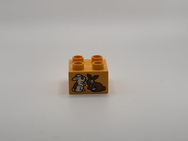 Konijnen op blok helder licht oranje Duplo