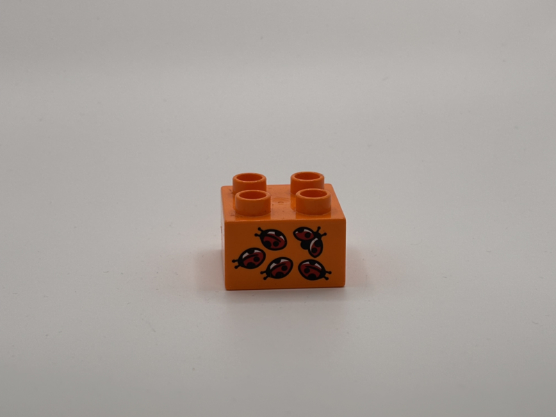 Lieveheersbeestjes op blok oranje Duplo