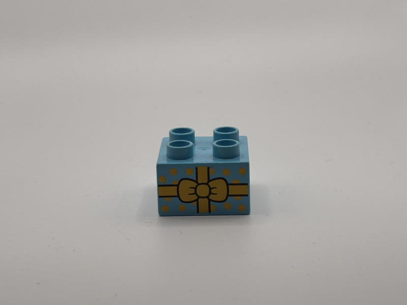 Cadeau met gele strik op blok medium azuurblauw Duplo