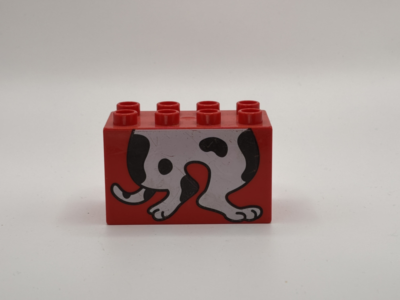 Poten hond op blok hoog rood Duplo