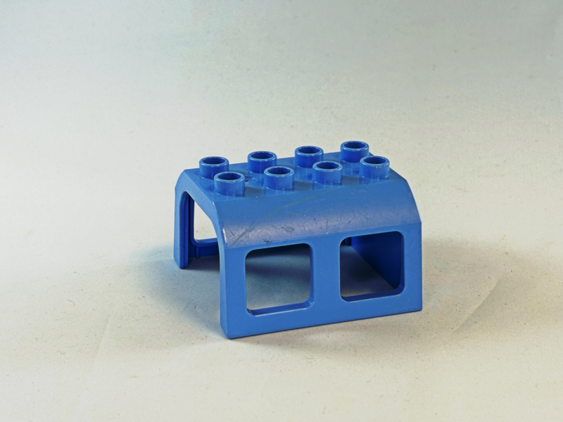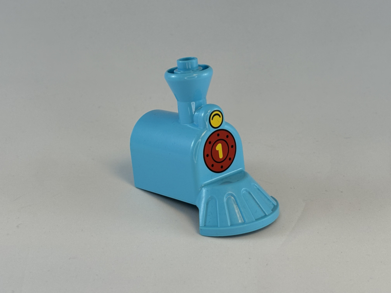 Duplo locomotief voorkant blauw, dak blauw en bak geel Duplo