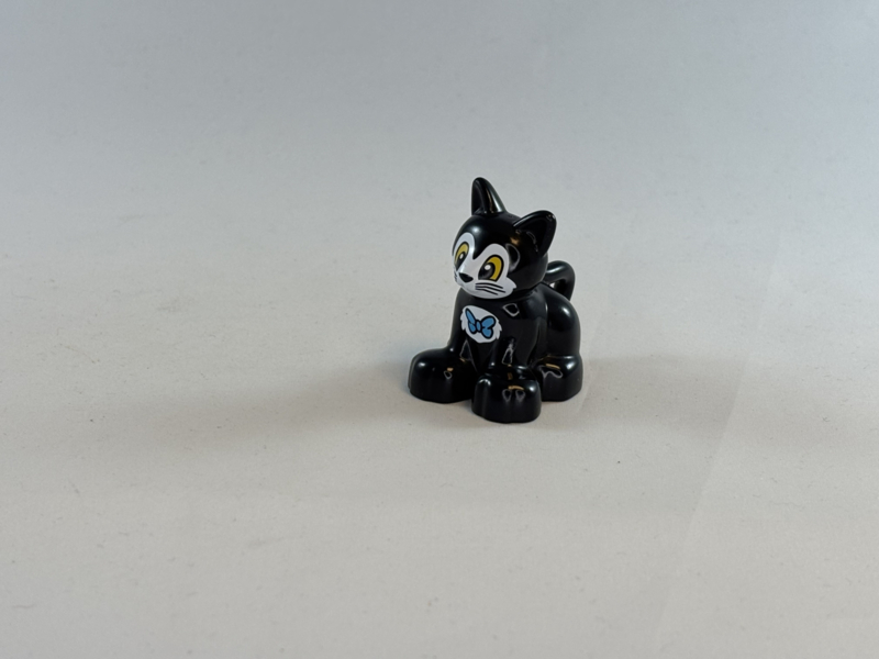 Poes / kat zwart met blauwe strik zittend DuploDuplo poes / kat zwart met blauwe strik zittend
