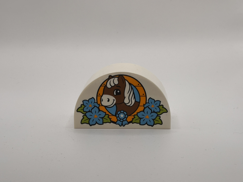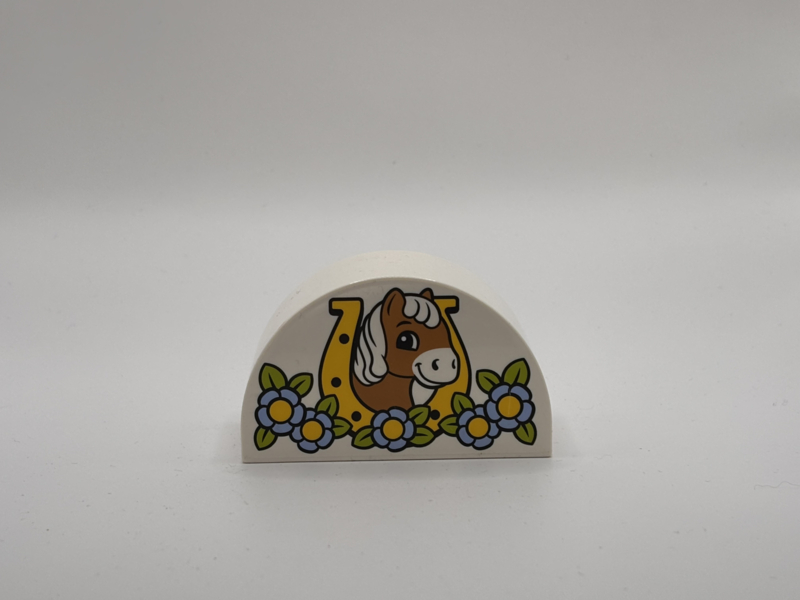 Halfrond blok paard / pony met hoefijzer wit Duplo