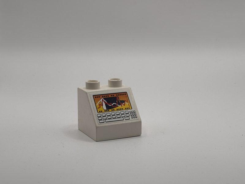 Poppetje creatieve auto’s op schuin blok wit Duplo